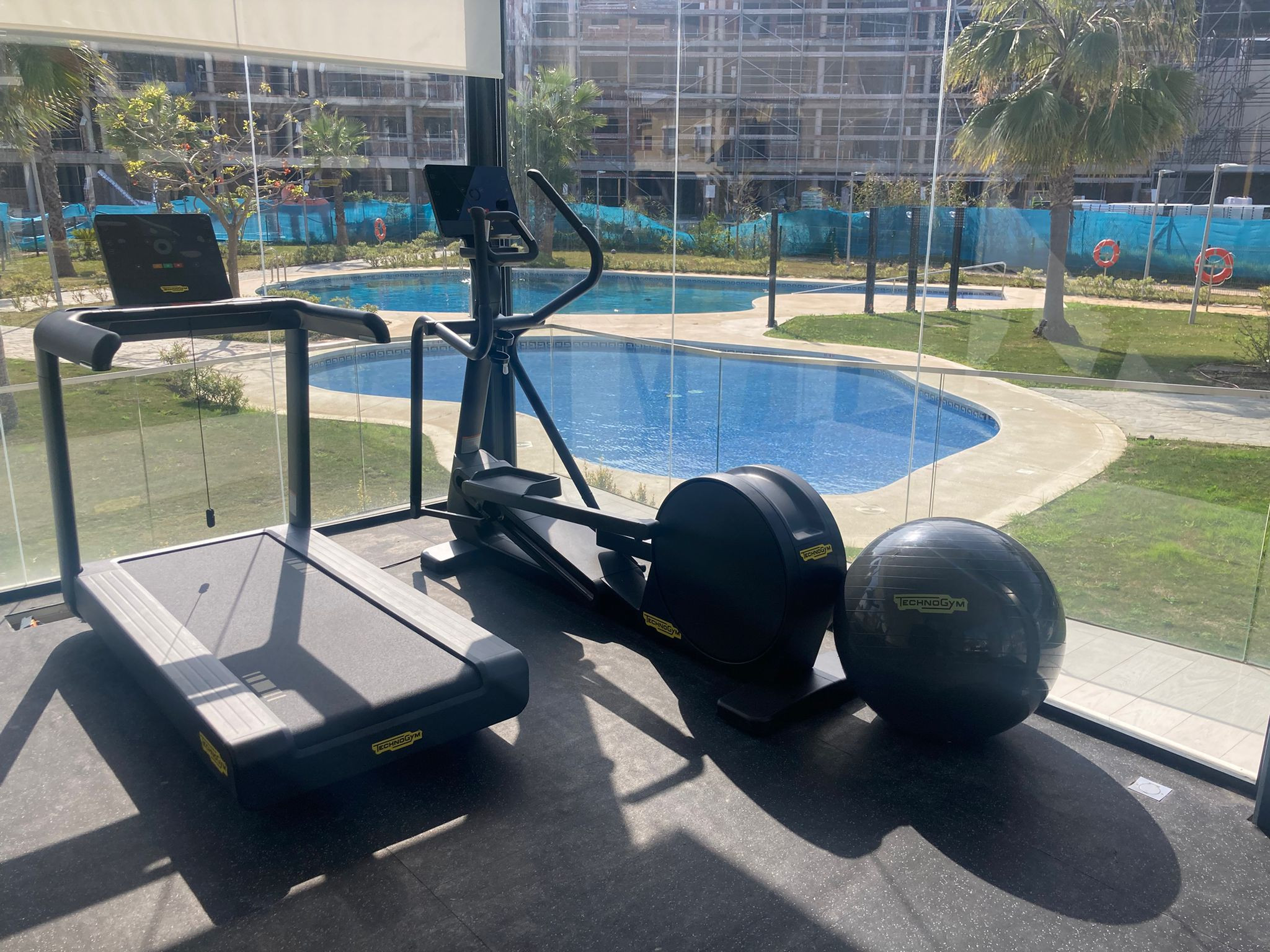Wohnanlage mit Schwimmbädern und Fitnessstudio.