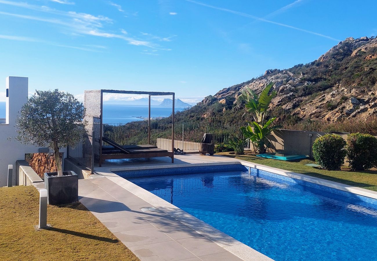Welcome to this contemporary luxury villa, built in 2018 and located in a quiet and secure residential area. Offering a 180° panoramic view of the sea, the Rock of Gibraltar and the African coasts, this prestigious property is a true haven of peace. Its large heated private swimming pool (8x4m, available upon request for €25/day) overlooks the sea and is accompanied by a landscaped garden ideal for relaxation.
