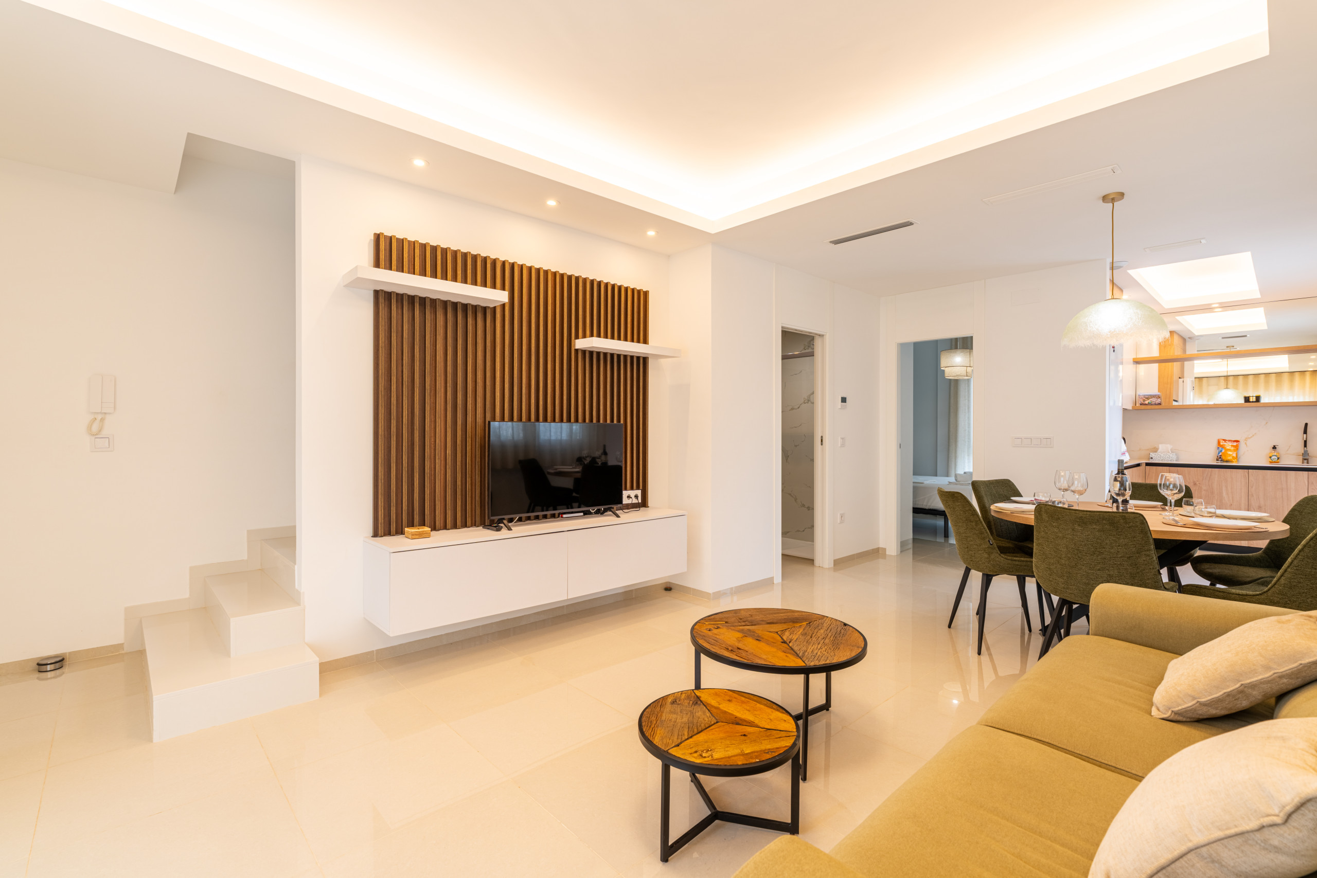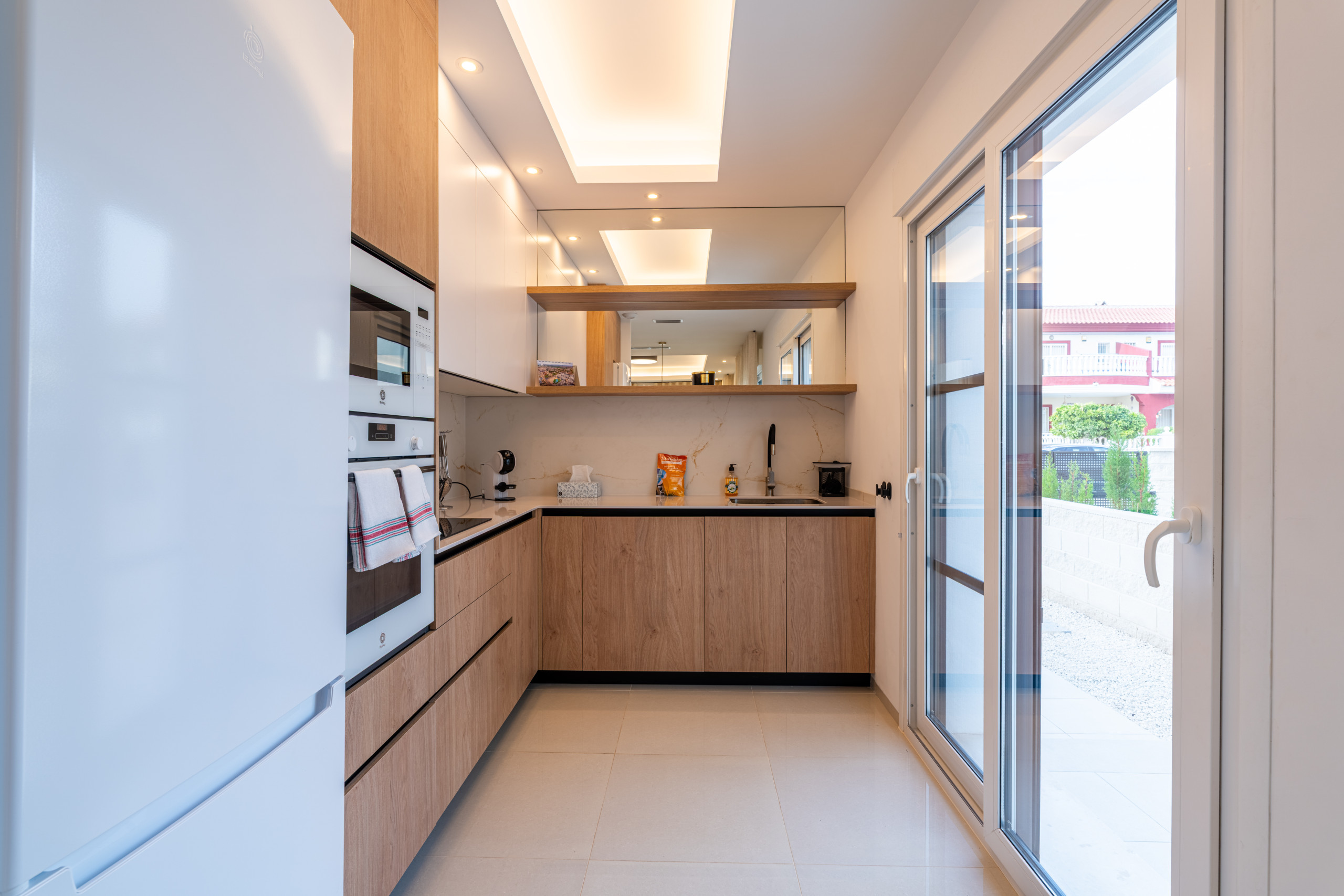 En la planta baja, dispondrá de una cocina abierta a la sala de estar y el comedor, creando un ambiente cálido y moderno. Este nivel también incluye un baño con ducha y una habitación doble. También podrá disfrutar de una amplia terraza privada, ideal para tomar el desayuno o saborear una buena comida al sol.