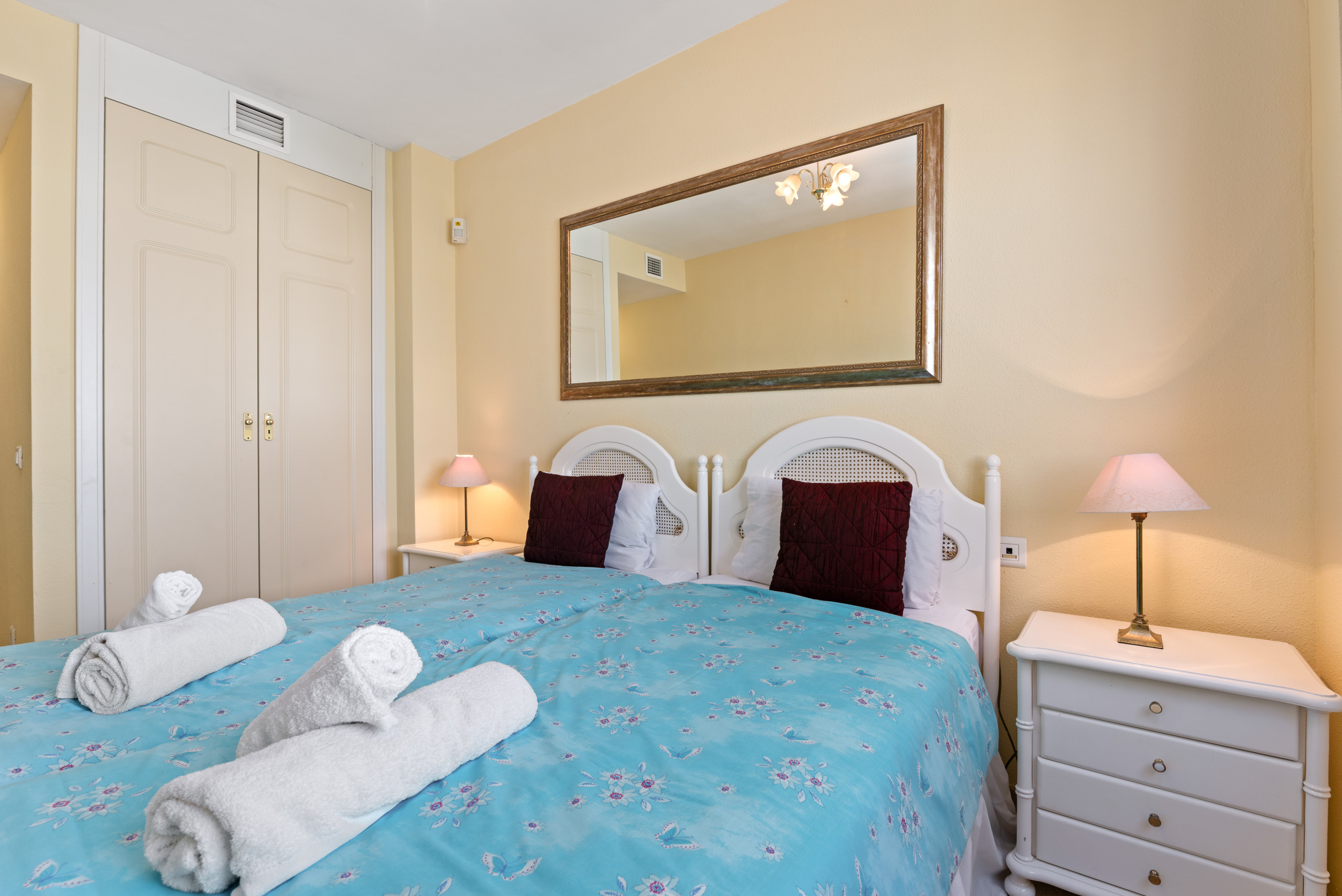 een kamer met 2 enkele bedden (met ingebouwde kast), woonkamer met salontafels en een slaapbank, een volledig uitgeruste keuken met oven, magnetron en vaatwasser, badkamer met bad, airconditioning warm koud, flatscreen-tv, gratis wifi.