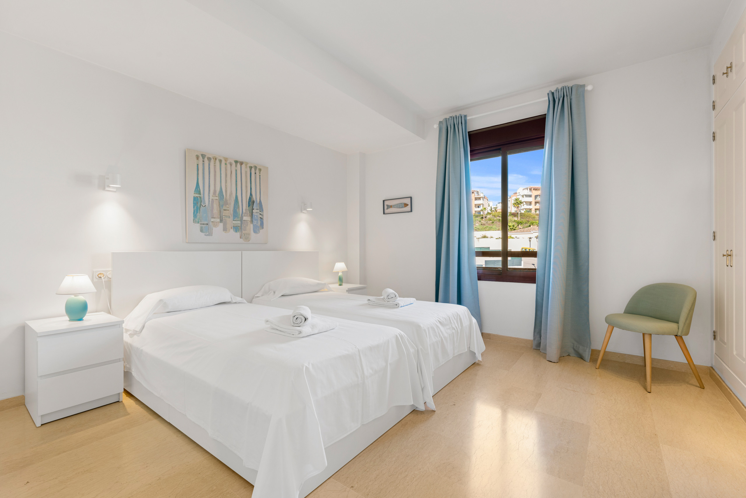 Het appartement is op 400 m van het strand. De Eroski supermarkt is op 300 m, Mercadona op 2 km en Lidl op 3 km. De mooie jachthaven van Puerto de la Duquesa is op 15 minuten lopen.