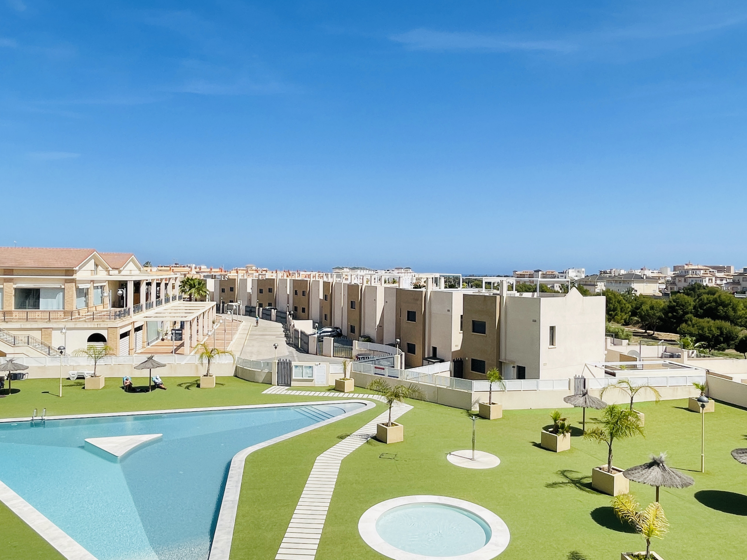 Het complex heeft een ideale ligging, op 700 m van het winkelcentrum La Zenia Boulevard, op 1,5 km van het strand van La Zenia en op een paar km van golfbanen. Ook dicht bij de havenstad Torrevieja en de zoutmeren met hun flamingo's (15 minuten), waterparken, mooie wandelingen of fietstochten en vele bezienswaardigheden. De luchthaven van Alicante ligt op 45 minuten afstand en de luchthaven van Murcia op 50 minuten afstand.