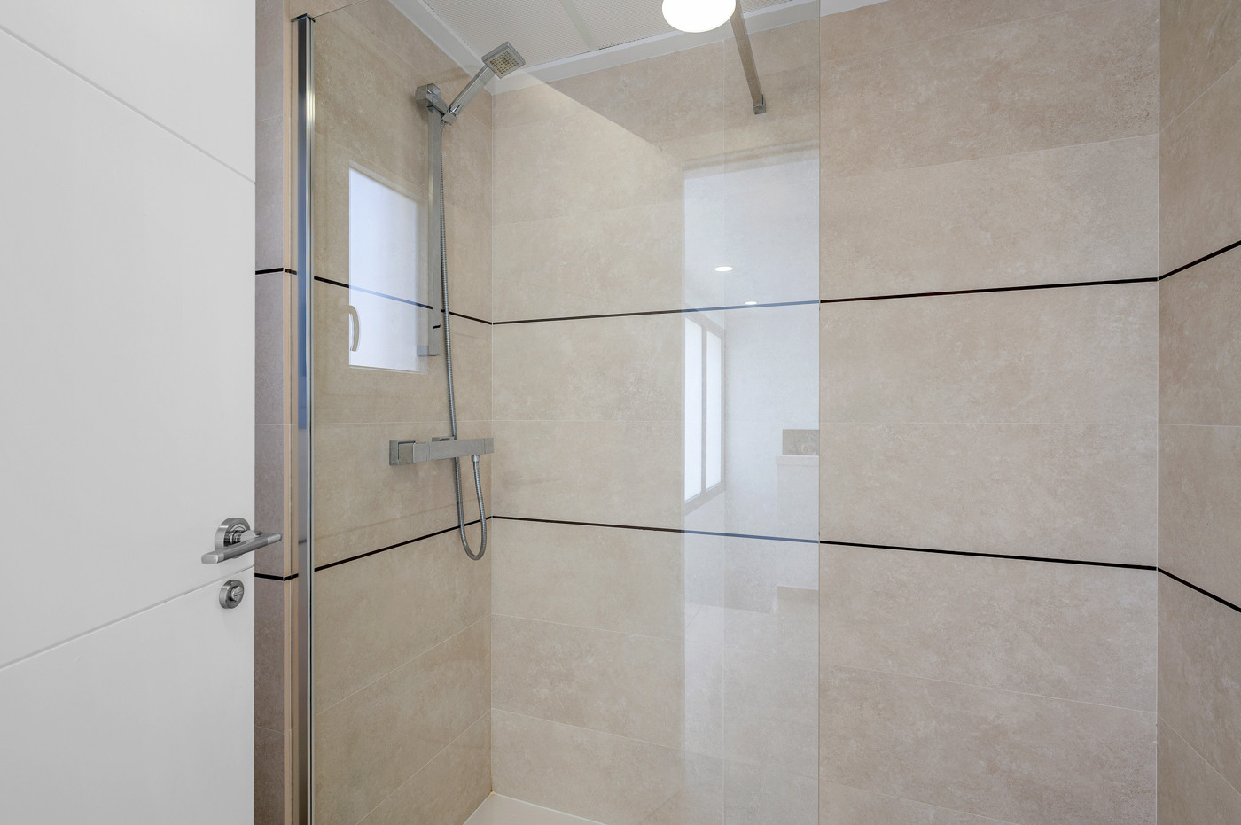 De eerste slaapkamer "suite" heeft een kingsize bed, de tweede slaapkamer heeft een tweepersoonsbed en de derde slaapkamer heeft twee eenpersoonsbedden. Twee badkamers met Italiaanse douche en wc.